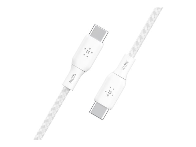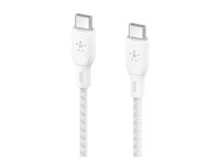 Belkin BoostCharge - USB-kaapeli - 24 pin USB-C (uros) to 24 pin USB-C (uros) - 3 m - valkoinen