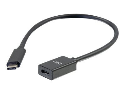 C2G 1ft USB-C to C 3.1 (Gen 2) Male to Female Extension Cable (10Gbps) - USB extension cable - 24 pin USB-C (uros) to 24 pin USB-C (naaras) - USB 3.1 Gen 2 / Thunderbolt 3 - 3 A - 30 cm - valettu - musta