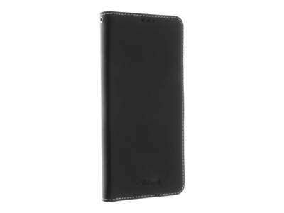 Insmat - Läppäkansi matkapuhelimelle - aito nahka, polykarbonaatti, kartonki + paperi + alumiinifolio, puuvillaompeleet - musta malleihin Motorola Moto G62, G62 5G